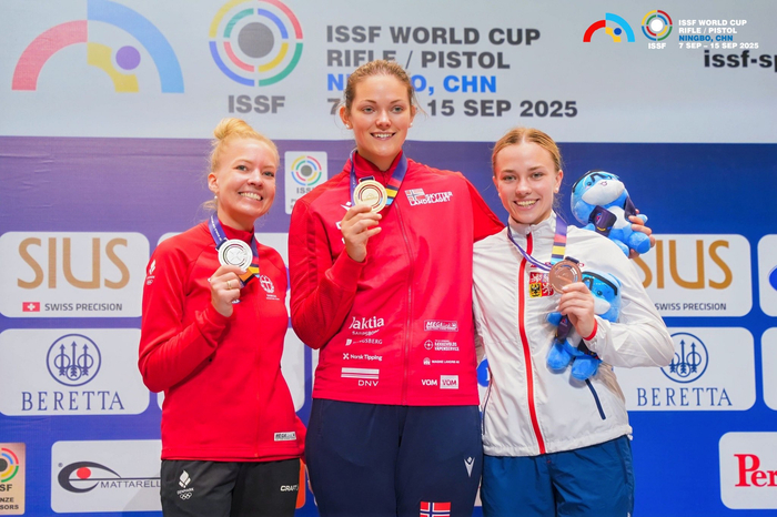 本站比赛中,迪斯塔德已与搭档海格收获10米气步枪混合团体金牌,本次夺冠是她在宁波站的第二金。她还将在14日参加女子10米气步枪个人赛。